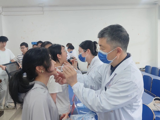 活动现场,口腔专家为同学们提供面对面健康咨询,详细解答日常生活中遇到的各类口腔问题,通过正畸案例展示,分析不同类型的错颌畸形以及相应矫正方法,使大家对正畸治疗有更加直观和深入的了解。口腔专家还为现场同学进行免费口腔检查,对于发现的问题,给出专业治疗建议,并指导大家进行口腔护理,保持口腔健康。