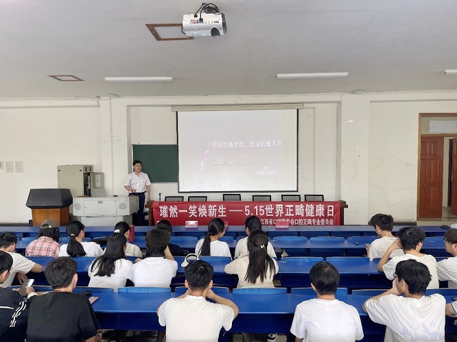 5月14日下午,在“世界正畸健康日”来临之际,江西省人民医院口腔科主任医师刘新庆教授一行五人来到公司,在博学楼三楼报告厅开展口腔义诊。此次活动的主题是“璀然一笑焕新生”,旨在提高大家对口腔健康的重视,普及口腔保健知识,养成良好的口腔卫生习惯。