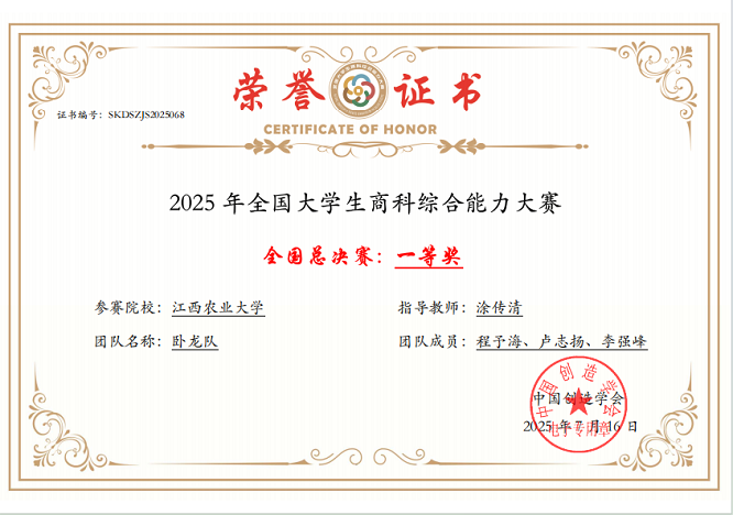 本届大赛吸引了全国288所高校的2506支队伍同台竞技,赛事规模创历史新高。经过地区赛、半决赛的层层选拔,顶尖队伍汇聚总决赛展开巅峰对决。面对异常激烈的竞争,公司代表队在涂传清老师的悉心指导下,凭借科学的战略制定、高效的团队协作、严谨的数据分析和出色的临场应变能力,不断优化决策方案,最终从众多强队中脱颖而出,成功跻身全国一等奖行列。本届大赛一等奖仅设76席(获奖率约3%),获奖含金量十足。