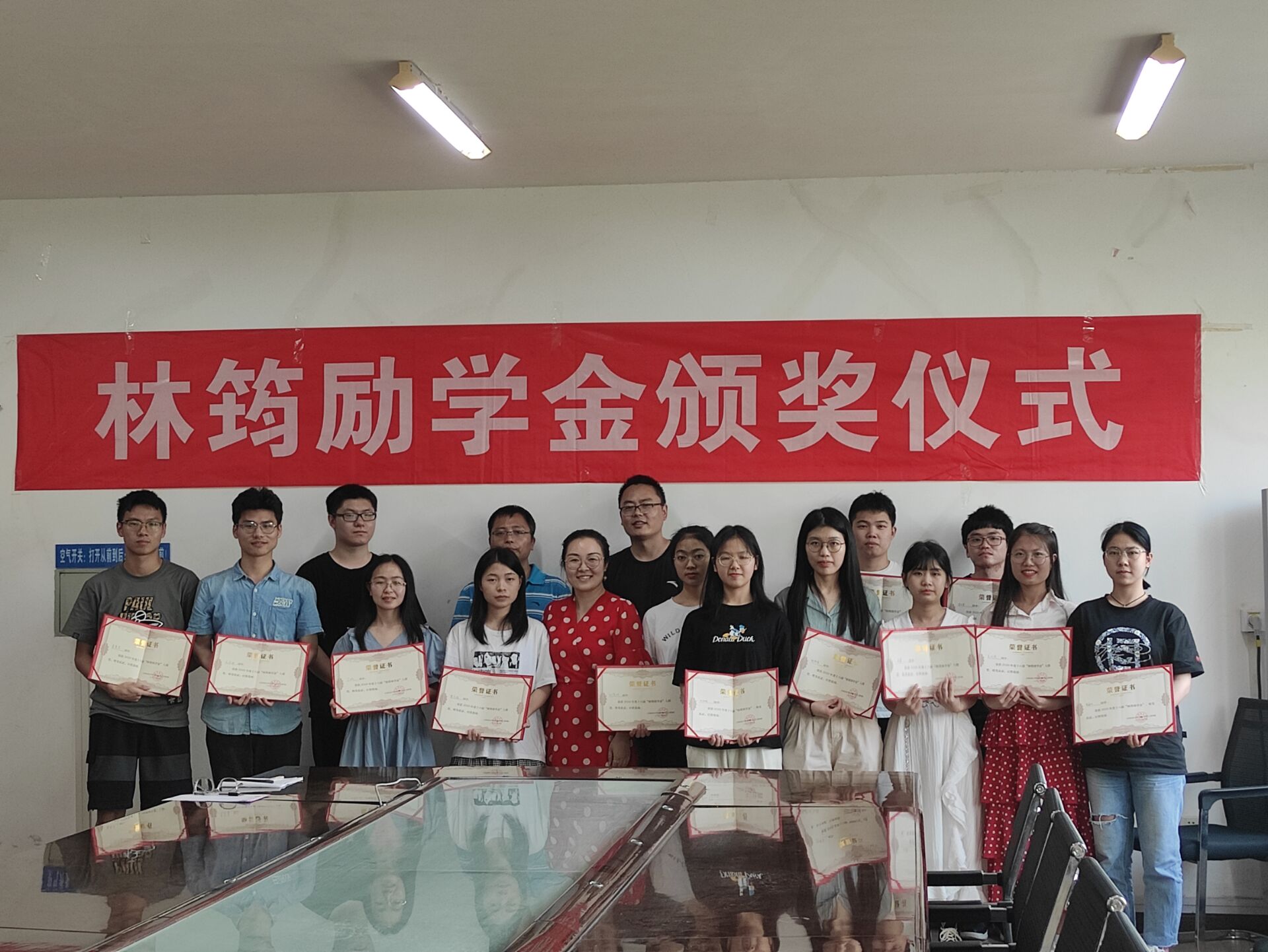 林筠励学金是公司员工赖春林、周筠夫妇为回报母校,勉励母校学子,在公司设立的专项奖学金,该奖学金自2005年起开始设立,今年已是第十六届。经过公司审核推荐,赖春林、周筠夫妇考核,公司刘欣宇、欧阳瑜、黄嘉欣、袁飞望等四名同学获得此次林筠励学金,赖倩倩、龚勇军等八名同学获得励学金入围奖。随后由赖春林夫妇及院团委书记李飞共同为获得者及入围者进行颁奖。在颁奖结束后,获奖同学对赖春林、周筠夫妇无私奉献表示衷心感谢,也表示要坚守心中那份对学习的热情与信仰,奋勇前进,不忘时代使命,不负青春年华,书山有路勤为径,学海无涯苦作舟。赖春林夫妇也勉励大家不忘初心,努力学习,刻苦钻研,要吃得住苦、弯得下腰、扎得下身,真正成为对国家、对社会有帮助的人才。