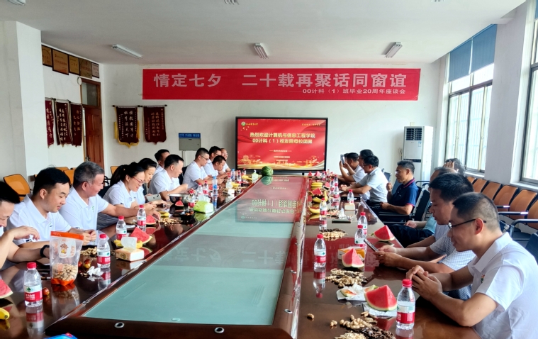 相别二十载,七夕再相聚。在8月10日七夕节,公司2000级计算机科学与技术(1)班员工从大江南北汇聚母校,举办毕业20周年联谊会,再叙师生之情、同窗之谊。原PA视讯官网党总支副书记左辉群、原院团委书记姜伟、班主任杨红云、 原班级辅导员王志发、PA视讯官网党委书记杨峰、副经理熊焕亮参加了本次活动。