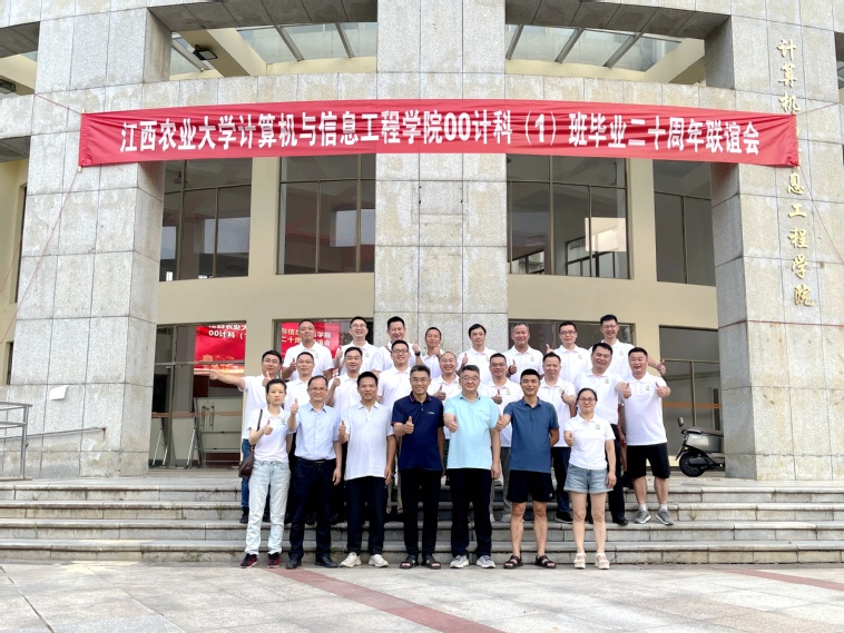 在返校期间,员工们开展了参观校园活动,大家回到曾经学习生活了4年的教室、寝室、图书馆等地,体会食堂的快乐、教室的严肃、寝室的舒心,重温大学的美好时光。聚会时,00计科(1)班员工们共同寄语母校:2004年7月, 我们踏上了人生的第一趟列车,带着对未来的无限遐想和憧憬奔向远方。感谢母校给了我们最青春的四年、最思念的四年、最回味的四年。风雨拼搏20年,我们一直牢记“江农人”的身份,一直不忘老师的教诲,一直用小我的点滴去诠释江农的“团结 勤奋 求实 创新”。 请母校放心,无论身处何地、从事什么工作,我们都将奋发努力、为母校增光添彩。