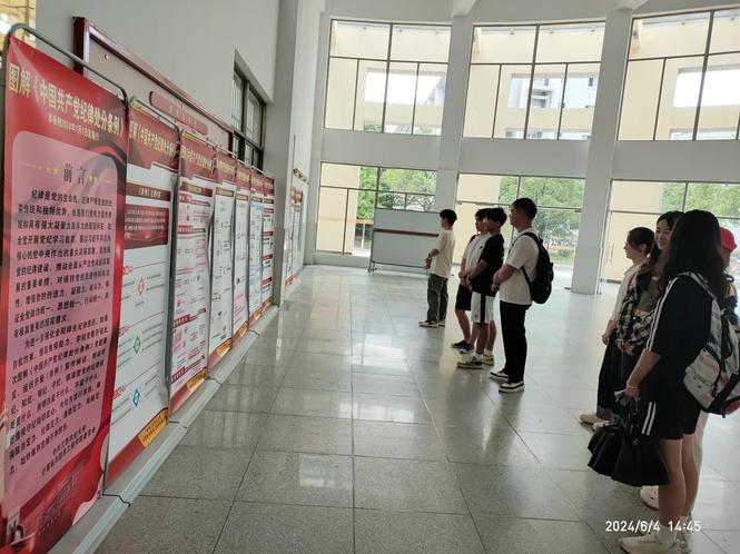 近日,为进一步推进党纪学习教育,引导党员、干部学纪、知纪、明纪、守纪,学院在一楼大厅举办图解《中国共产党纪律处分条例》主题展览,学院各党支部积极组织师生党员参观学习。