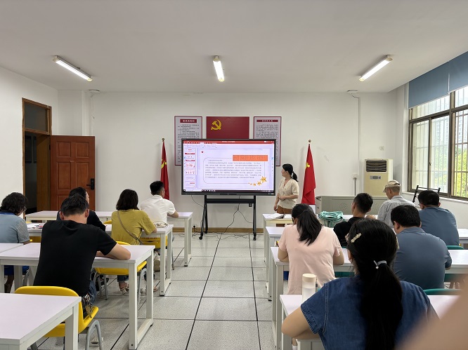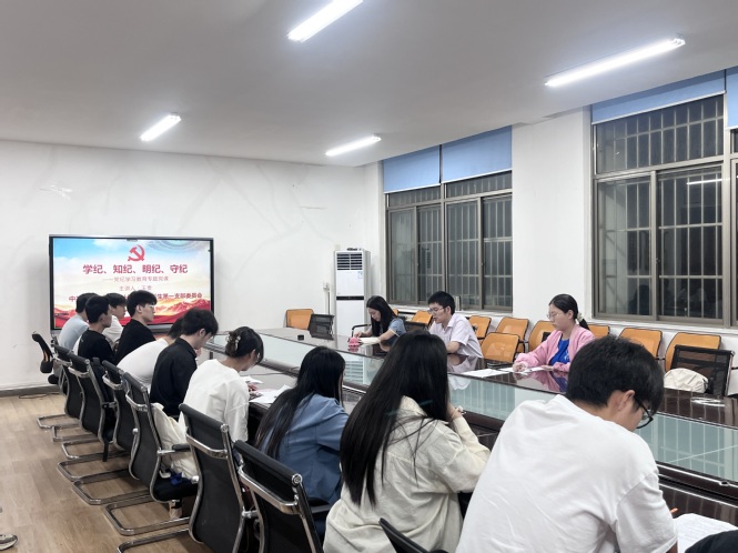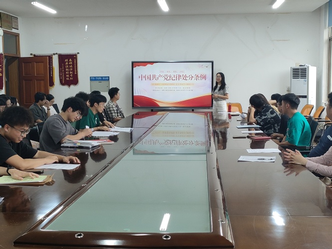 6月19日,本科生第三党支部书记祝超超在本支部讲授了专题党课。她表示,学纪、知纪、明纪、守纪是党员的终身课题,要时刻绷紧纪律这根弦,将党纪学习教育的成果转化为党员干部忠诚干净担当的硬脊梁、铁肩膀、真行动。
