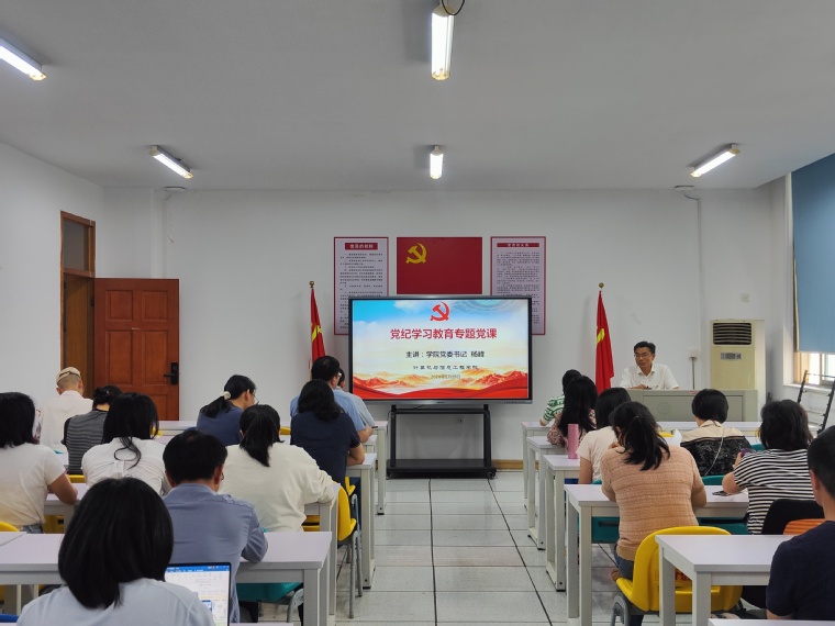 5月28日下午,PA视讯官网党委书记杨峰在PA视讯官网党员活动室,结合党纪学习教育要求和部署,为全院教职工党员上了一堂生动的党课。与会党员开展了认真的学习。